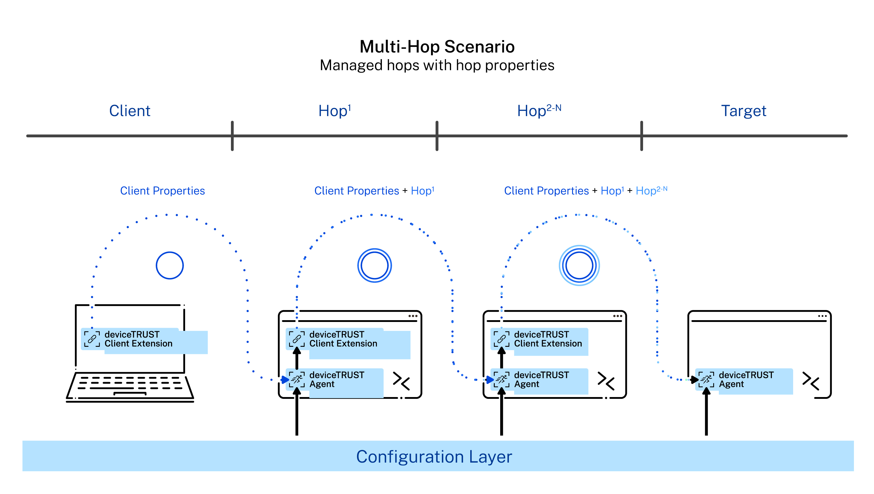 たとえば、社内ゲートウェイ → セキュアジャンプサーバー → 本番環境といった多段階アクセスでも、一貫したゼロトラスト制御を適用できます。