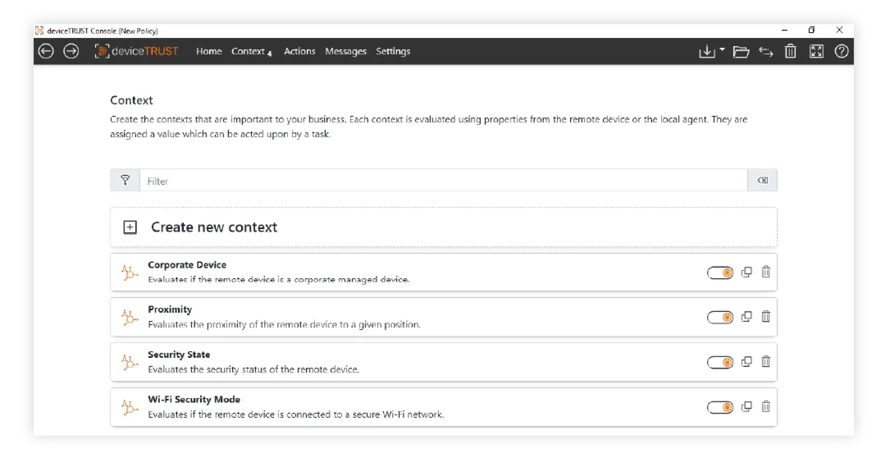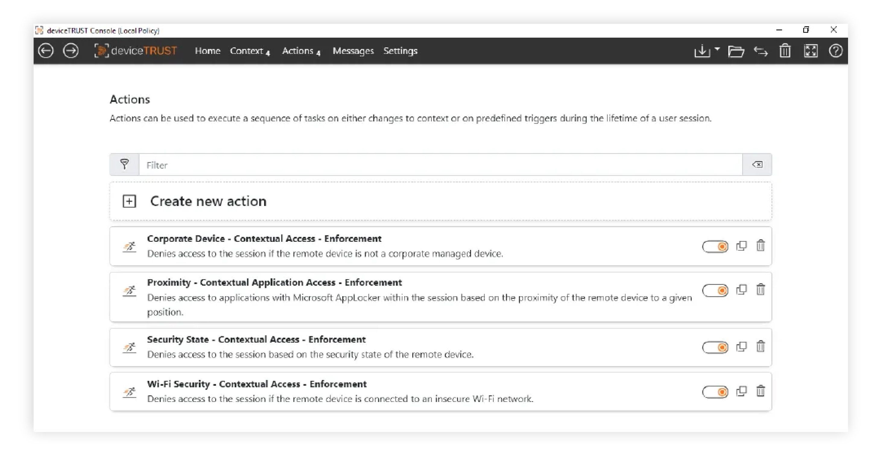 deviceTRUSTは、定義したデバイスコンテキストを利用して、環境を保護するリアルタイムアクションをトリガーします。