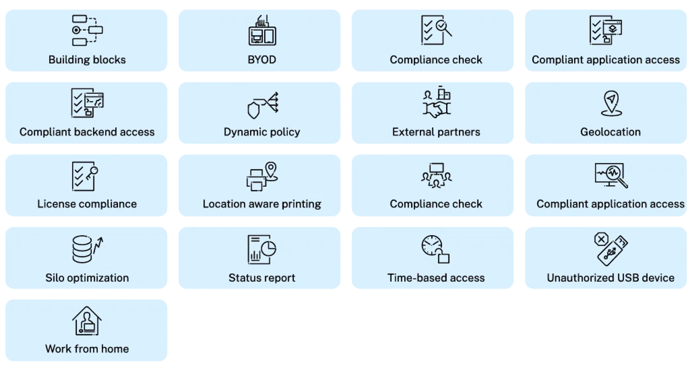 たとえば、ユーザーセッションのロック、アプリケーションアクセスの制御、デジタルワークスペースのポリシー設定、OSやサードパーティAPIの呼び出しなどが可能です。